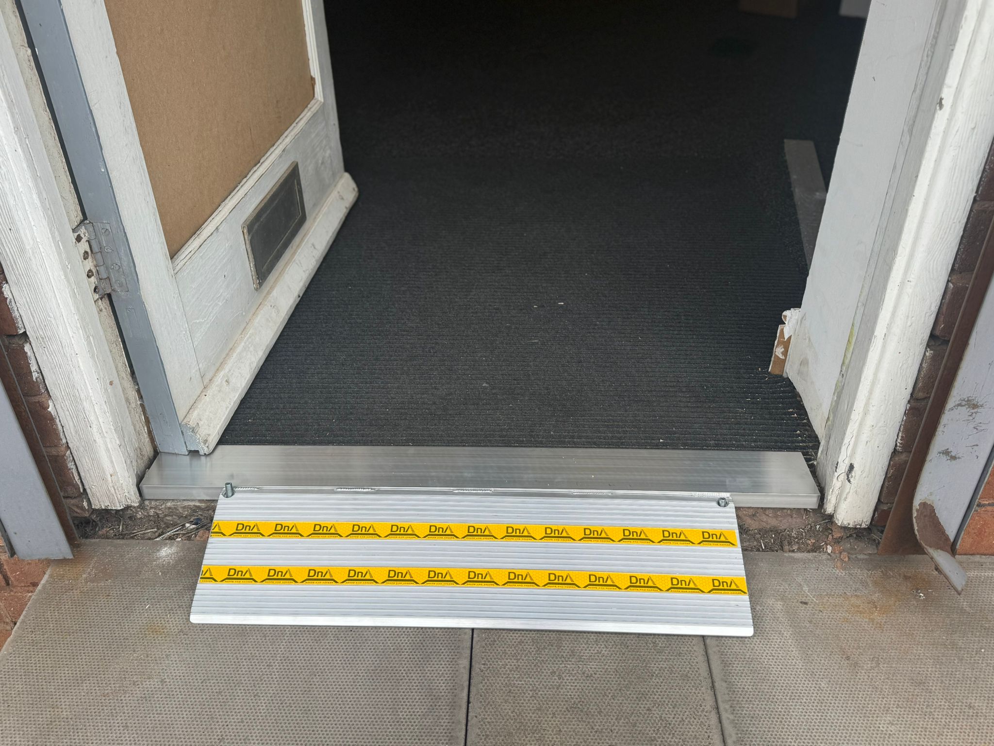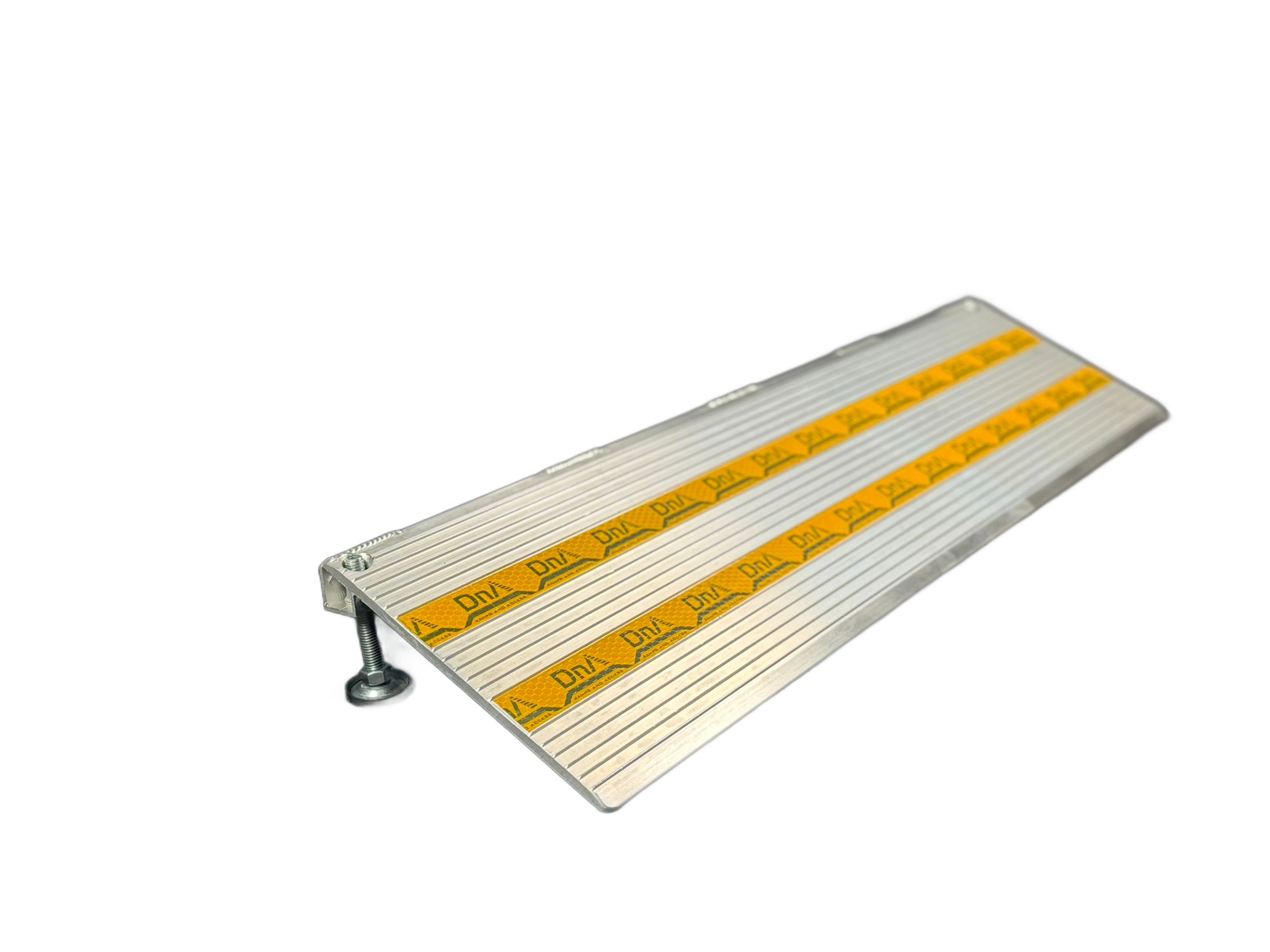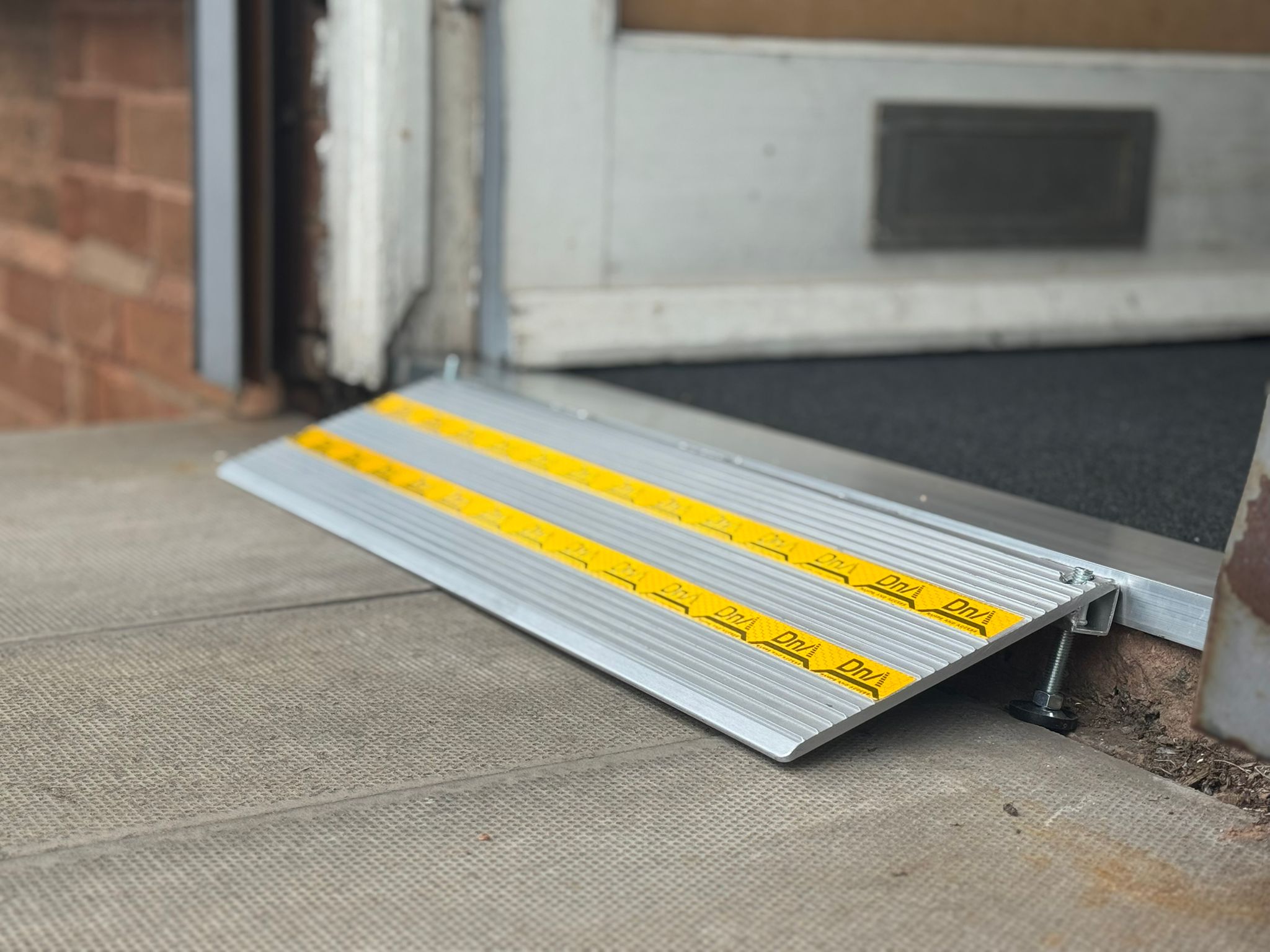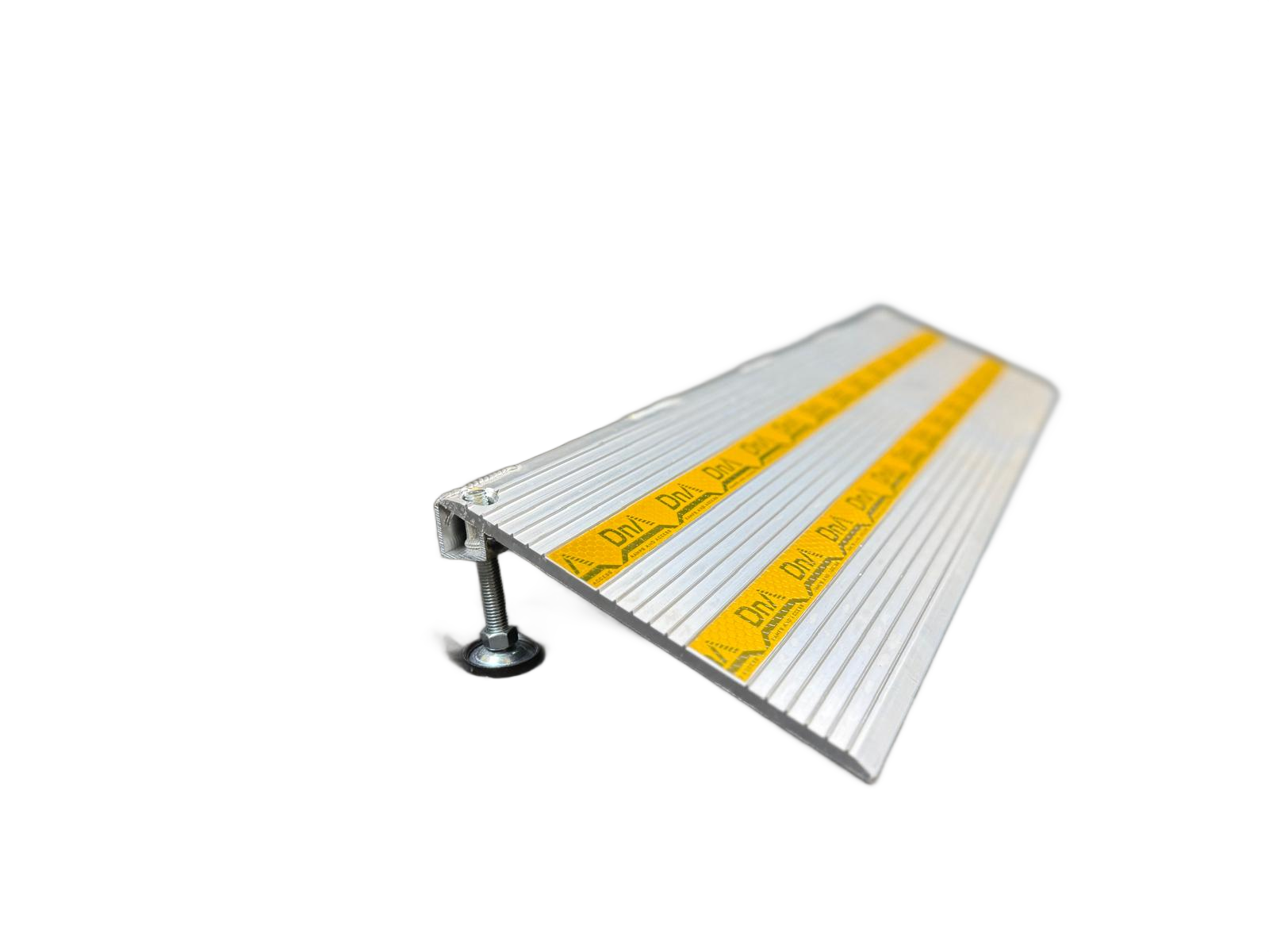 Designed for convenience, safety, and durability, this adjustable aluminium threshold ramp provides a smooth gradient over doorsteps, raised thresholds, or small steps, ensuring easy access for wheelchairs, mobility scooters, trolleys, and pedestrians.